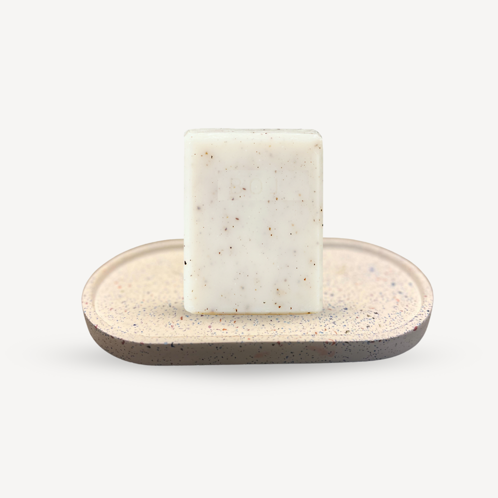 El Set Conexión lo diseñamos para transformar tus momentos de cuidado en un ritual especial. Incluye una bandeja/jabonera de concreto, y un jabón de arroz en barra que limpia profundamente mientras hidrata, calma y aporta luminosidad a la piel. Con ingredientes naturales como la glicerina, la fécula de arroz y el aceite esencial de incienso.