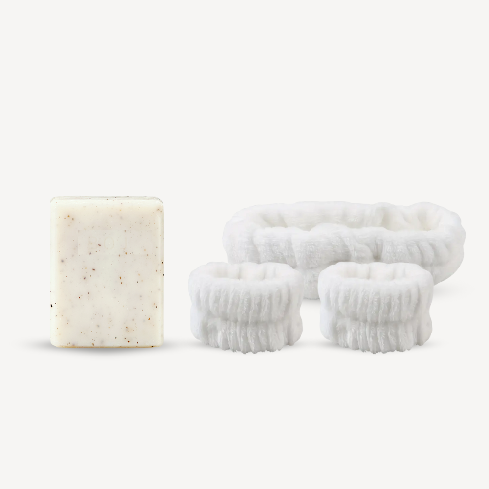 Set ideal para iniciar tu ritual de K-Beauty. Las banditas recogen el pelo para que puedas aplicar tus productos con comodidad y el jabón de arroz limpia suavemente, hidratando al mismo tiempo y dejando la piel lista para recibir los siguientes pasos.
